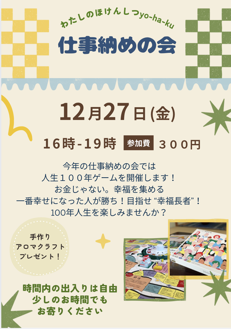 yo-ha-kuから今年一年の感謝をこめて、昨年に引き続き仕事納めの会を開きます。
